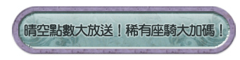 話說自從各位玩家協助楷勒的「黑龍孵育計畫」後,楷勒終於把傳說中的黑夜風暴座騎給孵育出來,但為了孵育傳說中的黑夜風暴座 騎也出現了資金不足的情況,因此為了發放廣大榮耀之盾士兵們的軍餉,楷勒只好將「狂嵐的黑夜風暴」忍痛販售,而販售所得 也將分給各位協助孵育黑龍的菁英玩家們!